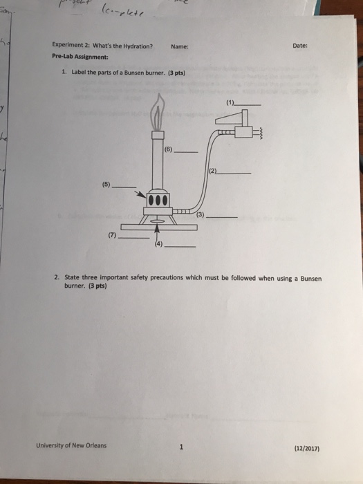 Label the bunsen burner. Bunsen burner - Ormalearn Open all the windows and allow a few minutes to elapse before lighting a Bunsen burner. Close the air hole (using the collar) before opening the gas tap Hold a burning splint (or match stick) at the mouth of the chimney and open the gas tap at almost the same time. Open the air hole after lighting the gas. Answers to Questions 1.9 (a) PDF Bunsen Burner Lab - WordPress for Faculty & Staff Bunsen Burner support stand w/ ring wire screen gloves 250 mL beaker 100mL graduated cylinder metal thermometer Part 1: Parts of a Bunsen Burner! 1. Sketch one of the Bunsen burners from the lab. (In the space Below) 2. Identify and label its parts using the guide sheet! 3. Give the purpose of each part of the Bunsen Burner! Bunsen Burner Poster - Diagram with Labels | Teach Starter A poster containing a diagram with labels showing the key parts of a Bunsen burner. Use this educational classroom poster in your science lessons to highlight the key parts of a Bunsen burner. A lot of equipment is used in science experiments and it is important to know the names of and understand each part of the equipment and how it works. The Bunsen Burner (1) - eChalk "The Bunsen burner" The Bunsen Burner (1) Label the Bunsen burner Use the phrases shown below to label the diagram. Bunsen burner flames and air hole positions 1 2 3 4 Air hole closed: a yellow, sooty flame often called the 'safety flame'. Use this hole position when not in use or when lighting Air hole slightly open