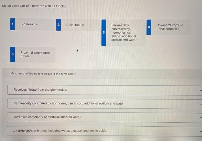 Answered: From the descending limb of the nephron… | bartleby Solution for From the descending limb of the nephron loop a water molecule would next pass into the _____. proximal convoluted tuble glomerulus… Urinary System Flashcards | Quizlet A) ascending limb of the nephron loop B) proximal convoluted tubule C) distal convoluted tubule D) descending limb of the nephron loop D) passive transport During reabsorption in the proximal convoluted tubule, most of the Cl⁻ and HCO₃⁻ ions are moved by ______ mechanisms. A) counter transport B) osmotic C) active transport D) passive transport A ascending limb of the nephron loop b descending - Course Hero See Page 1. a. ascending limb of the nephron loop. b. descending limb of the nephron loop. c. proximal convoluted tubule and collecting duct. d. distal convoluted tubule and collecting duct. The organs of the urinary system are a. the glomerular capsule, proximal convoluted tubule, the nephron loop, distal convoluted tubule, and the collecting ... What Is Responsible For Water Reabsorption At The Descending Limb Of ... What occurs in the descending limb of the loop of Henle quizlet? The loop of henle has two parts known as the descending and ascending limbs. … The descending limb is permeable to water, but has low permeability to Sodium. As the filtrate travels down the descending limb the water leaves by osmosis because of the salty environment into the medulla.