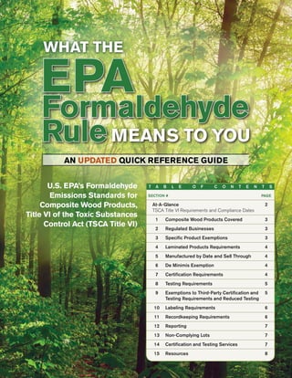 PDF Formaldehyde Emission Standards for Composite Wood Products in US - ICDLI 5. Differences between CARB ACTM Phase 2 and EPA TSCA Title VI System The formaldehyde emission limits for composite wood products under the EPA TSCA Title VI are the same as CARB ACTM Phase 2 formaldehyde emission limits. EPA worked to align the other requirements of the federal rule with the California requirements.