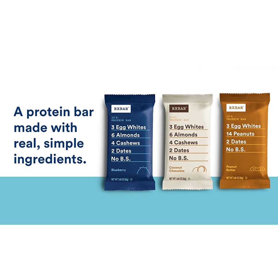 Blueberry Protein Bars (12 Count) | RXBAR Made with sweet blueberries and a few other simple ingredients - egg whites for protein, dates to bind and nuts for texture. These blueberry protein bars cure the Monday blues. Gluten Free Kosher Non GMO Filled with Protein Real Ingredients** **Visit RXBAR.com/whats-inside for details Check all ingredients and nutritional facts Where To Buy