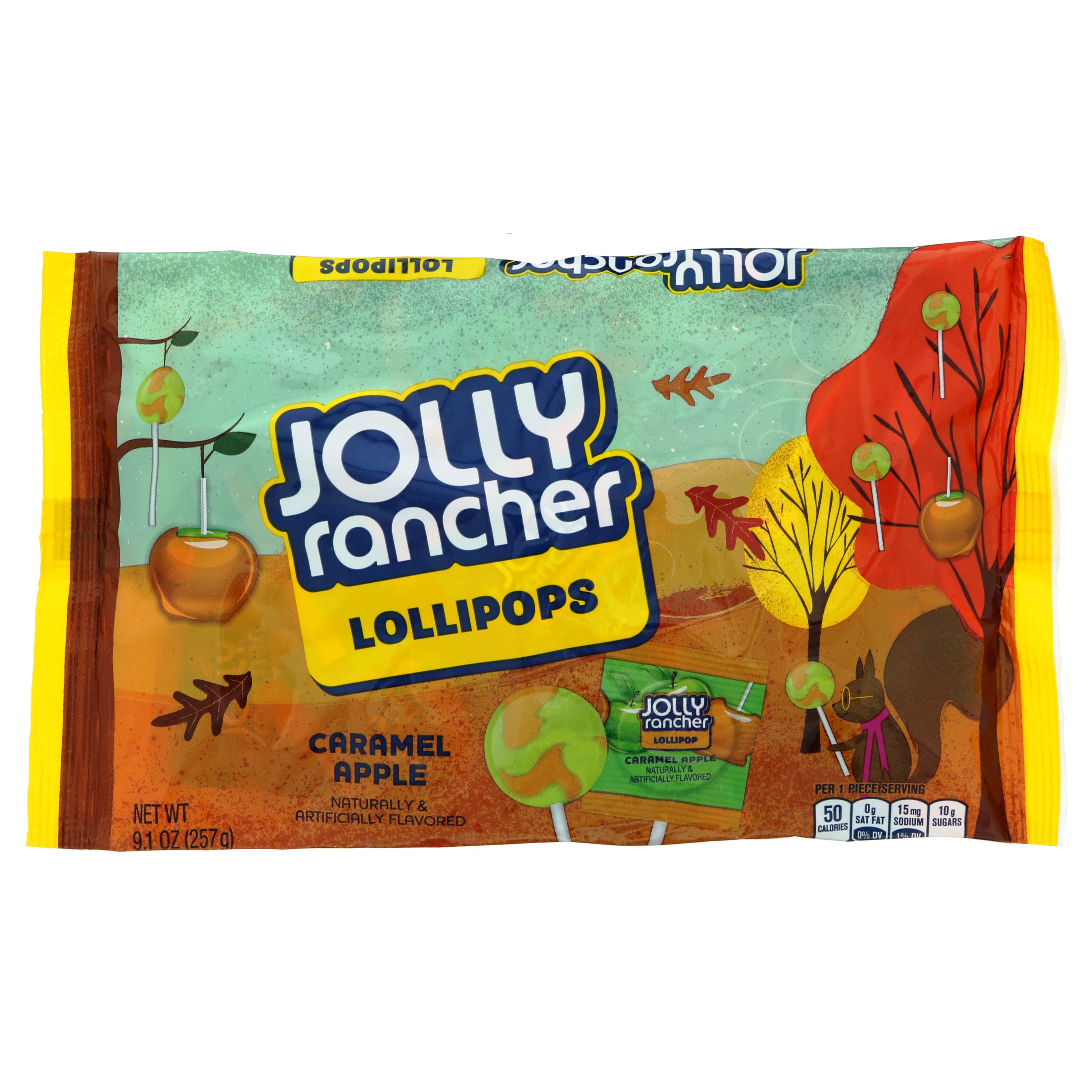 List of products manufactured by The Hershey Company Jolly Rancher: Jolly Rancher Lollipop assorted bags with individually wrapped pieces; Jolly Rancher Lollipops are a hard candy on a stick. Each assorted bag comes with cherry lollipops, watermelon lollipops, green apple lollipops, pink lemonade lollipops. ... carbs and calories than regular Hershey's Syrup, and still has a genuine chocolate ...