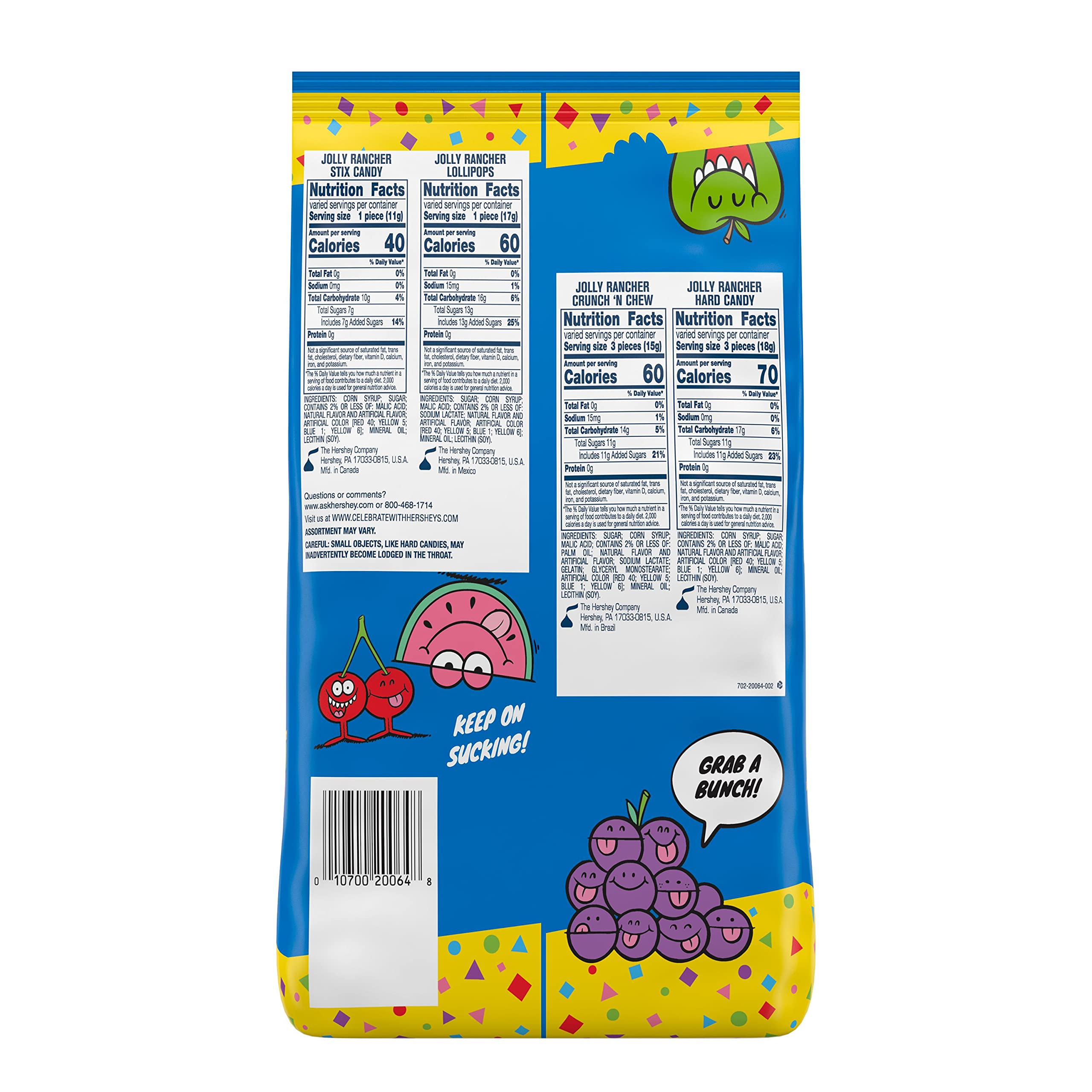 Snacks & Sweets - Amazon.com Ring Pop Individually Wrapped Bulk Lollipop 20 Count Summer Variety Pack – Lollipop Suckers w/ Assorted Fruity Flavors - Fun Summer Candy For Party Favors, 4th of July Snacks & Goodie Bags ... JOLLY RANCHER Assorted Fruit Flavored Hard Candy, Individually Wrapped, 80 oz Bulk Bag (360 Pieces) ... Calories Per Serving. 0 Calories; Up to 40 ... 25 Classic Sweet Treats That Are No Longer Sold - Newsweek 30/07/2021 · Arkansas: Jolly Ranchers The tart hard candy comes in a dazzling array of varieties, from the traditional—including grape, apple and blue raspberry—to Jolly Rancher Hotties flavors, like … › classic-sweet-treats-no-longer25 Classic Sweet Treats That Are No Longer Sold - Newsweek Jul 30, 2021 · Arkansas: Jolly Ranchers The tart hard candy comes in a dazzling array of varieties, from the traditional—including grape, apple and blue raspberry—to Jolly Rancher Hotties flavors, like ... › RANCHER-Assorted-FlavoredAmazon.com: JOLLY RANCHER Assorted Fruit Flavored Mixed ... The JOLLY RANCHER candy assortment bag is a mix of fruity favorites for the whole family in just one bulk bag. Enjoy a mix of hard, individually wrapped candy that is easy to snack on. This bag of individually wrapped, fruit-flavored assorted candy features JOLLY RANCHER Stix candy, lollipops and hard candy.