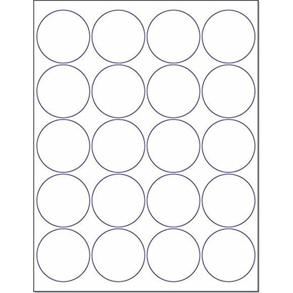 White 2" Round Circle Labels - 20 Labels Per Sheet - for Inkjet & Laser Printers - 25 Sheets / 500 Labels