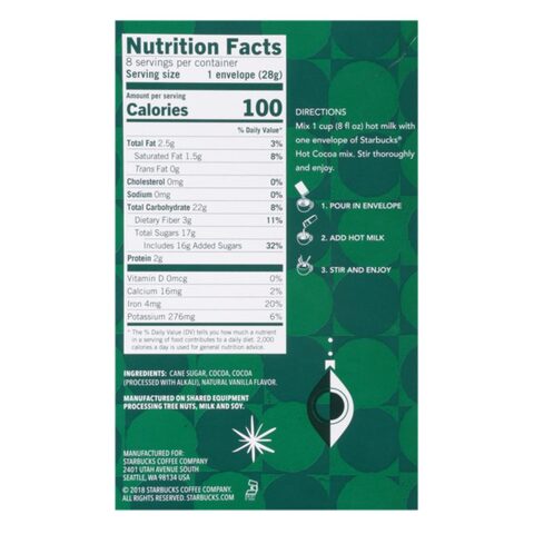 Starbucks soy milk nutrition facts. › menu › productStarbucks® Smooth and creamy matcha sweetened just right and served with steamed milk. This favorite will transport your senses to pure green delight. 240 calories, 32g sugar, 7g fat McDonald's Cheeseburger Nutrition Facts - FastFoodNutrition.org Allergy Information: a McDonald's Cheeseburger contains gluten, milk, soy and wheat. a McDonald's Cheeseburger does not contain egg, fish, peanuts, shellfish or tree nuts.* * Please keep in mind that most fast food restaurants cannot guarantee that any product is free of allergens as they use shared equipment for prepping foods. Starbucks® Starbucks Coffee Company. Menu; Rewards; Gift Cards; Find a store Sign in Join now. Menu; Rewards; ... rich espresso balanced with steamed milk and a light layer of foam. A perfect milk-forward warm-up. 190 calories, 18g sugar, 7g fat. Full nutrition & ingredients list. About Us. Our Company; Our Coffee; Stories and News; Starbucks Archive ... Soy Milk 101: Nutrition, Benefits, Risks, and More May 21, 2019 · What Are the Nutrition Facts of Soy Milk? ... Is the New Starbucks Coffee Drink Healthier Than a PSL? 8 Healthy High-Protein Snacks to Help You Power Through the Day. Wellness inspired. Wellness ...