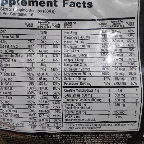 Optimum Nutrition Serious Mass - Banana : Health & Household Optimum Nutrition Serious Mass Weight Gainer Protein Powder, Vitamin C, Zinc and Vitamin D for Immune Support, Vanilla, 6 Pound (Packaging May Vary) 39,952 $44.99 $ 44 . 99 ($0.47/Ounce) GNC Pro Performance Weight Gainer - Vanilla Ice Cream, 6 Servings, Protein to Increase Mass 1,298 Serious Mass Nutrition Label - Optimum Nutrition Serious Mass Protein ... Serious Mass Nutrition Label - Optimum Nutrition Serious Mass Protein Weight Gainer Bodybuilding Com. Hier empfehlen wir ihnen die . Nearly four years after we first told you about it, nutrition labels are finally changing. Serious mass™ ist die ultimative formel für die gewichtszunahme serious mass label. Das pulver beinhaltet neben protein ... Optimum Nutrition Serious Mass Chocolate Powder - Holland & Barrett Always read the label before use. Nutritional Information. Per: 100g / 334g (Per Serving) Energy Kj: 1582Kj / 5284Kj: Energy Kcal: 378Kcal / 1263Kcal: Fat: 1.7g / 5.5g: ... Each serving of Optimum Nutrition Serious Mass contains 1,263 calories and less than 5.5g of fat. There are also 251g carbohydrates and 50g blended protein per serving. Optimum Nutrition, Serious Mass, Weight Gainer Protein Powder, Vanilla ... Optimum Nutrition's SERIOUS MASS is the ultimate muscle building and weight gain formula. With 1,250 calories per 2-scoop serving and 50 grams of protein to support muscle recovery, this powder makes the ideal post-workout and between meals shake for sizing up your goals. SERIOUS MASS provides you with the tools you need to support your weight ...