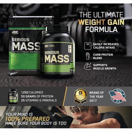 Amazon.com: Optimum Nutrition Serious Mass Gainer Protein Powder ... Serious Mass is the ultimate in weight gain formulas. With 1,250 calories per serving and 50 grams of protein for muscle recovery support, this instantized powder makes the ideal post-workout and between meals shake for sizing up your goals. Serious Mass | Optimum Nutrition UK Weight Gainers Serious Mass 366 Help boost calories intake with 1,250 kcals per shake* 50 grams of Whey Protein - Helps build and maintain muscle 251 g CARBS - Helps support muscle recoveryᵒ 25 Vitamins and Minerals Buy together and SAVE 10% on the cheapest product Shop the NEW Optimum Nutrition Merchandise range Free delivery for orders over £45