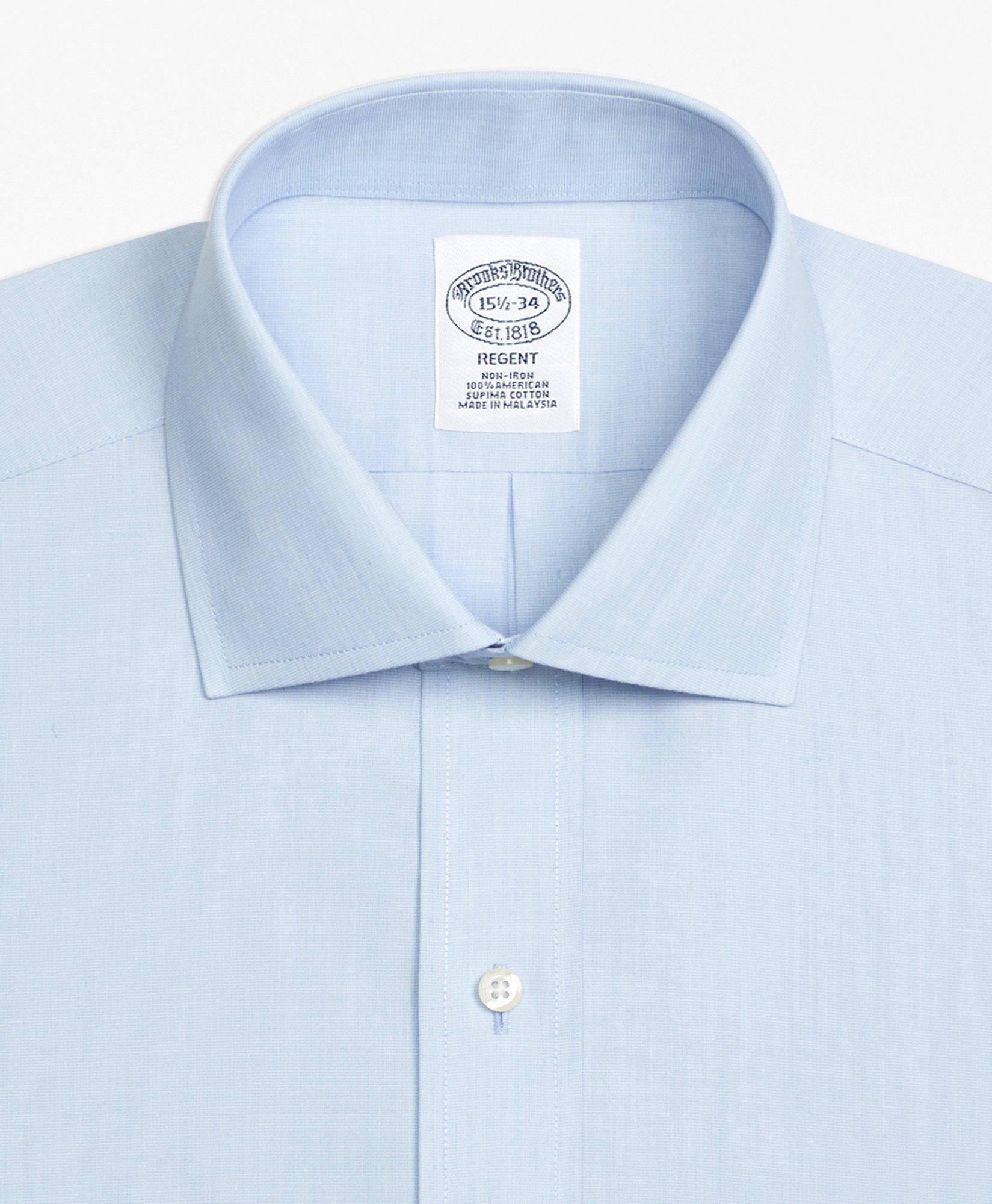 Brooks Brothers Men's Rope Striped Egyptian Cotton Dress Shirt Blue ... The English spread collar provides an ideal frame for more substantial tie knots. Our signature 6-Pleat Shirring at the French cuffs reinforces Brooks Brothers dedication to a well-made dress shirt. Additional features include a French front placket and a chevron split-back yoke. This shirt is machine washable for easy care.