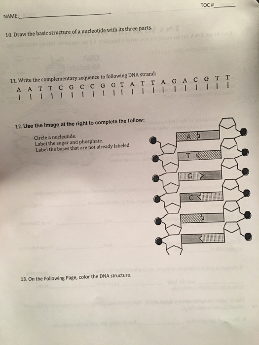 Basic Genetics - University of Utah RNA's chemical structure gives it the flexibility to take on a variety of shapes and functions. interactive explore. RNA's Role In The Central Dogma. Learn the essential roles of the three most plentiful types of RNA messenger, transfer, and ribosomal in the processes of transcription and translation. learn more. Beyond the Central Dogma. Learn about some of the less-known roles … Biochemistry — Open & Free – OLI Draw the structure of all amino acids. Generate the primary sequence from sequencing data. Identify chiral centers on amino acids. Interpret changes in ΔH and ΔS. Join two amino acids into a dipeptide. Obtain ΔH and ΔS for protein unfolding from experimental data. Predict degree of protein unfolding given ΔH and ΔS. Predict the result of treating a protein with different … Answered: Put the following in order from… | bartleby Q: Draw and identify the three parts of a DNA nucleotide. A: The organic molecule that acts as the building block of DNA and RNA is called a nucleotide. It…