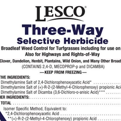 Lesco 3 way selective herbicide. 3 Way Max Turf and Ornamental Broadleaf Herbicide The 3 Way Max Turf and Ornamental Broadleaf Herbicide is a multi purpose solution that kills selective broadleaf weeds occurring in home lawns, schools, hospitals, parks, athletic fields, golf courses, sod farms and institutional areas. The 3 way max contains 2, 4-D, Mecoprop-p and Dicamba, the same active ingredients as Lesco 3 Way. It can ... Labels for LESCO THREE-WAY SELECTIVE HERBICIDE (10404-43) Labels for LESCO THREE-WAY SELECTIVE HERBICIDE (10404-43) You will need Adobe Reader to view some of the files on this page. See EPA's PDF page to learn more. Provided below is the information for the Product/Registration number selected. Labels Chemical Alt. Brand Name Inactive Alt. Brand Name Transfer History Site Pest Version: 2.4.2 Lesco 3-Way Advice | Lawn Care Forum at the rate of 4 fl. oz. of Three-Way Selective Herbicide per gallon of water and spray to thoroughly wet all foliage. A little confusing. No more than two applications per year. How often can you spot treat? I appreciate all the responses, thank you. cgaengineer Registered Joined May 10, 2007 15,774 Posts #7 · Mar 12, 2012 PDF DANGER - PELIGRO - Western Pest Services LESCO Three-Way Selective Herbicide ... Manufactured for LESCO, Inc. 1385 East 36th Street † Cleveland, OH 44114-4114 STORAGE AND DISPOSAL Do not contaminate water, food, or feed by storage or disposal. Your local government may forbid liquids and pesticides in their landfills.