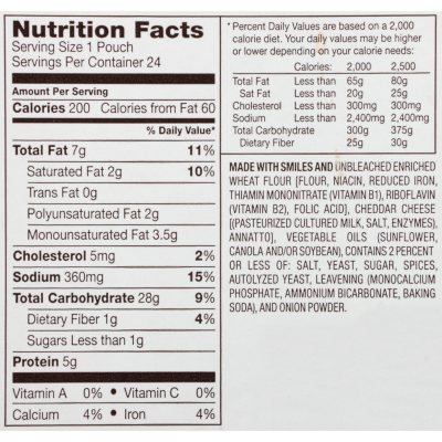 Food label goldfish. Pepperidge Farm® Goldfish Baked ... - Campbell's Foodservice Nutrition Facts ; 5g, 6%, 12g, 15%. Calories in Goldfish Crackers, Cheddar from Pepperidge Farm 14 Sept 2021 — Nutrition Facts. Serving Size: pieces (30g grams). Amount Per Serving. Calories from Fat 45. Calories 140. % Daily Value*. Pepperidge Farm Cheddar Goldfish Nutrition Facts · Features And Benefits. Baked, not fried, made with real cheese. · Special Dietary Needs. Zero Trans Fats · Ingredients.
