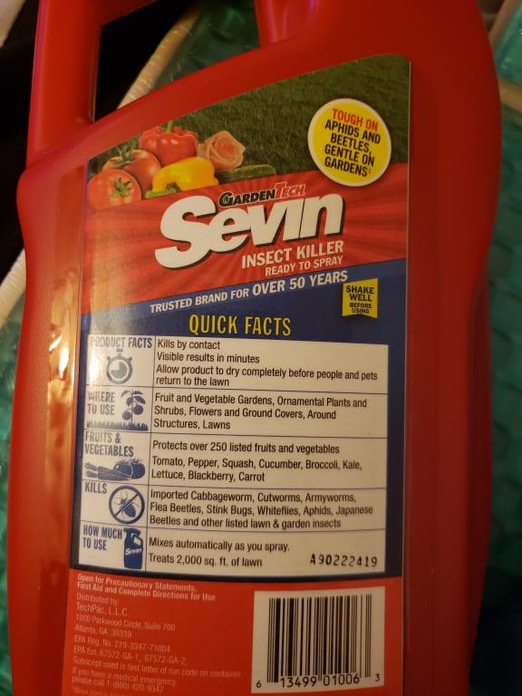 Liquid sevin label. SAFETY DATA SHEET SEVIN® SL CARBARYL INSECTICIDE - Bayer SEVIN® SL CARBARYL INSECTICIDE 1/12 Version 4.0 / USA Revision Date: 09/23/2021 102000004253 Print Date: 09/24/2021 SECTION 1: IDENTIFICATION OF THE SUBSTANCE/MIXTURE AND OF THE COMPANY/UNDERTAKING Product identifier Trade name SEVIN® SL CARBARYL INSECTICIDE Product code (UVP) 05927226 SDS Number 102000004253 EPA Registration No. 432-1227 Keep insects out of your garden - Sevin® Ready-to-Use | Sevin Labels and SDSs Previous Products Apply on vegetables, fruits, flowers, shrubs, trees, and other outdoor plants and surfaces Apply early or at first signs of insect damage People and pets can return to treated area once spray dries Shake bottle, adjust nozzle to narrow fan setting, hold sprayer 1 foot from plant, and spray evenly to kill insects Sevin SL Insecticide Product | Bayer Environmental Science US Sevin carbaryl insecticides have been trusted for decades by golf course superintendents, arborists, lawn care operators, nursery professionals, and parks and recreation directors. Sevin SL provides effective broad-spectrum control of more than 130 turf and ornamental pests. How Soon Can You Eat Veggies After Using Sevin? | eHow Aug 31, 2021 · Sevin's Ready-To-Use 5% Dust requires longer pre-harvest intervals than some of Sevin's other formulations. Legumes with inedible shells have a PHI of 21 days. Wait at least 14 days after using Sevin dust on collards, kale, lettuce and certain other greens. Radishes, carrots, potatoes and berries have a PHI of seven days.