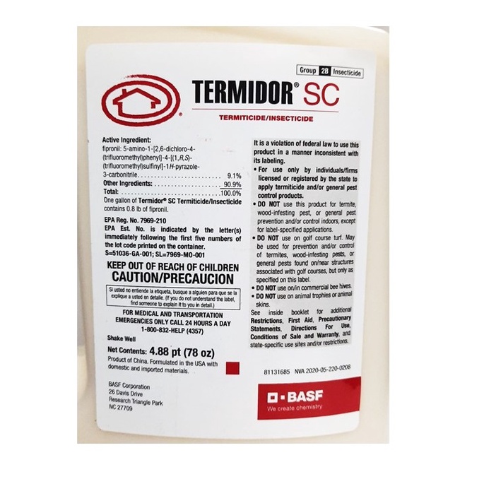 PDF Termidor SC Label - Do It Yourself Pest Control Products Have the product container or label with you when calling a poison control center or doctor, or going for treatment. In case of medical emergency involving this product, call BASF Corporation at 1-800-832-HELP (4357) or dial 911. PDF TERMIDOR RESIDUAL TERMITICIDE and INSECTICIDE - BASF TERMIDOR® will control ants, domestic cockroaches, web-spinning spiders and houseflies by direct contact and residual activity on treated surfaces. When applied as a surface spray as directed, TERMIDOR® will give up to 3 months control of ants and is best applied as PEST activity increases in early spring. A follow up application during summer... BASF Termidor® SC termiticide/insecticide receives approval for new use PMPs can now apply Termidor SC up to four times per year Research Triangle Park, N.C., April 16, 2015 — BASF announced the approval of new label use directions by Environmental Protection Agency (EPA) that allow Termidor® SC termiticide/insecticide* to be used up to four times per year.
