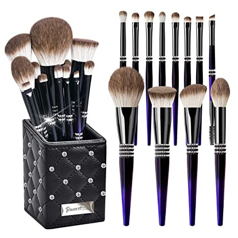 Bueart Design ULTRA SOFT Colorful LABELED Makeup Brushes Sets Rainbow Pink Makeup brush set with Large powder foundation Contour blush concealer ...