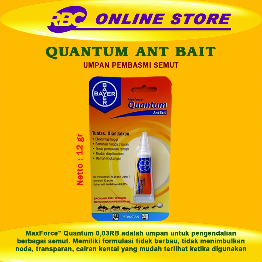 Maxforce Quantum Ant Bait Product | Bayer Environmental ... Maxforce Quantum Ant Bait Zoom Back to products Also labelled for use in these areas: Household Health Baits Maxforce Quantum Ant Bait Product Overview Key Benefits Use & Control Ant Portfolio Read more Termiticide Termiticide Premise Pro Premise Pro provides superior protection for... Termiticide Maxforce Granular Fly Bait